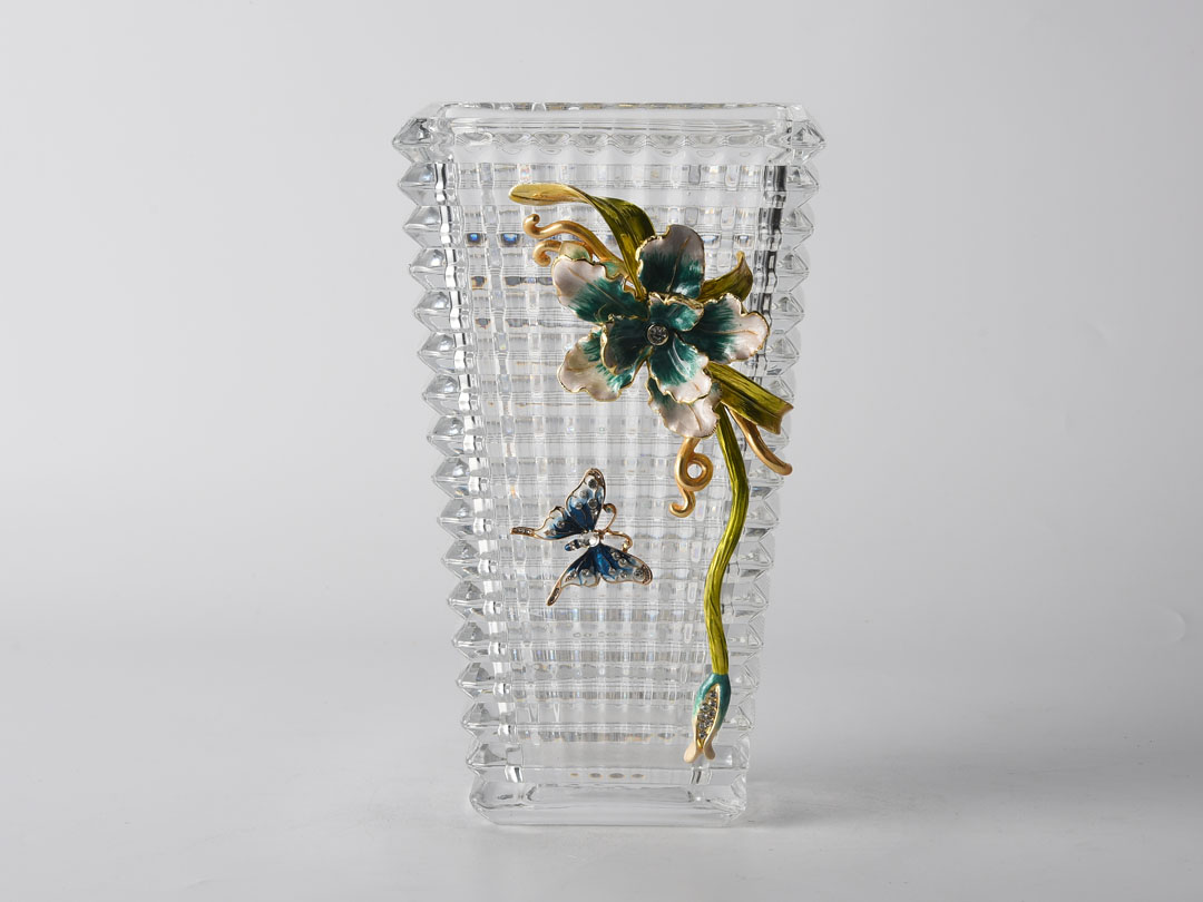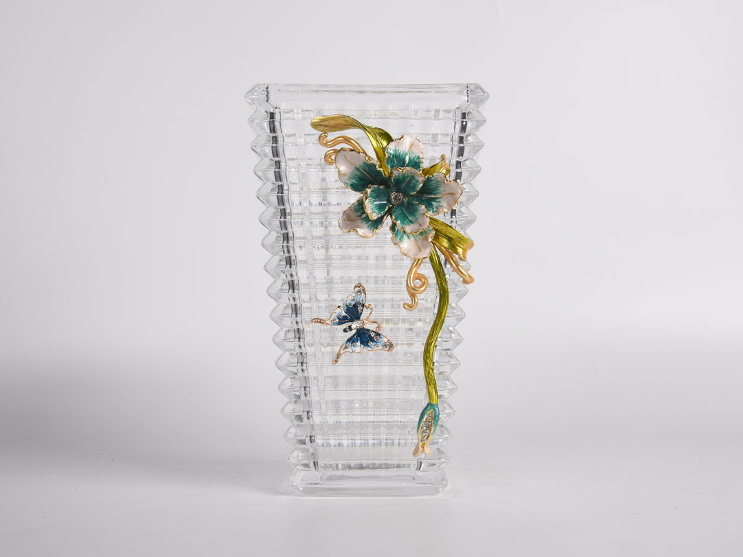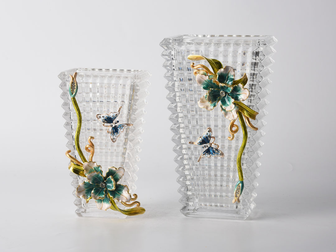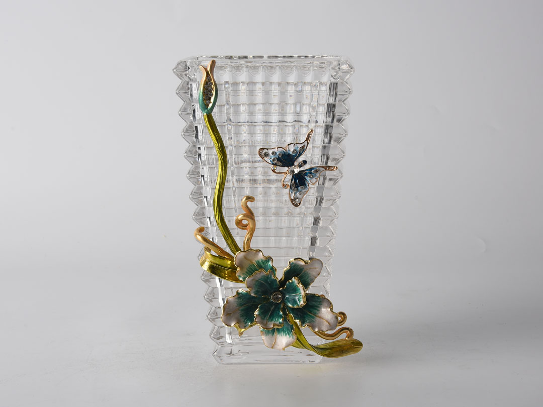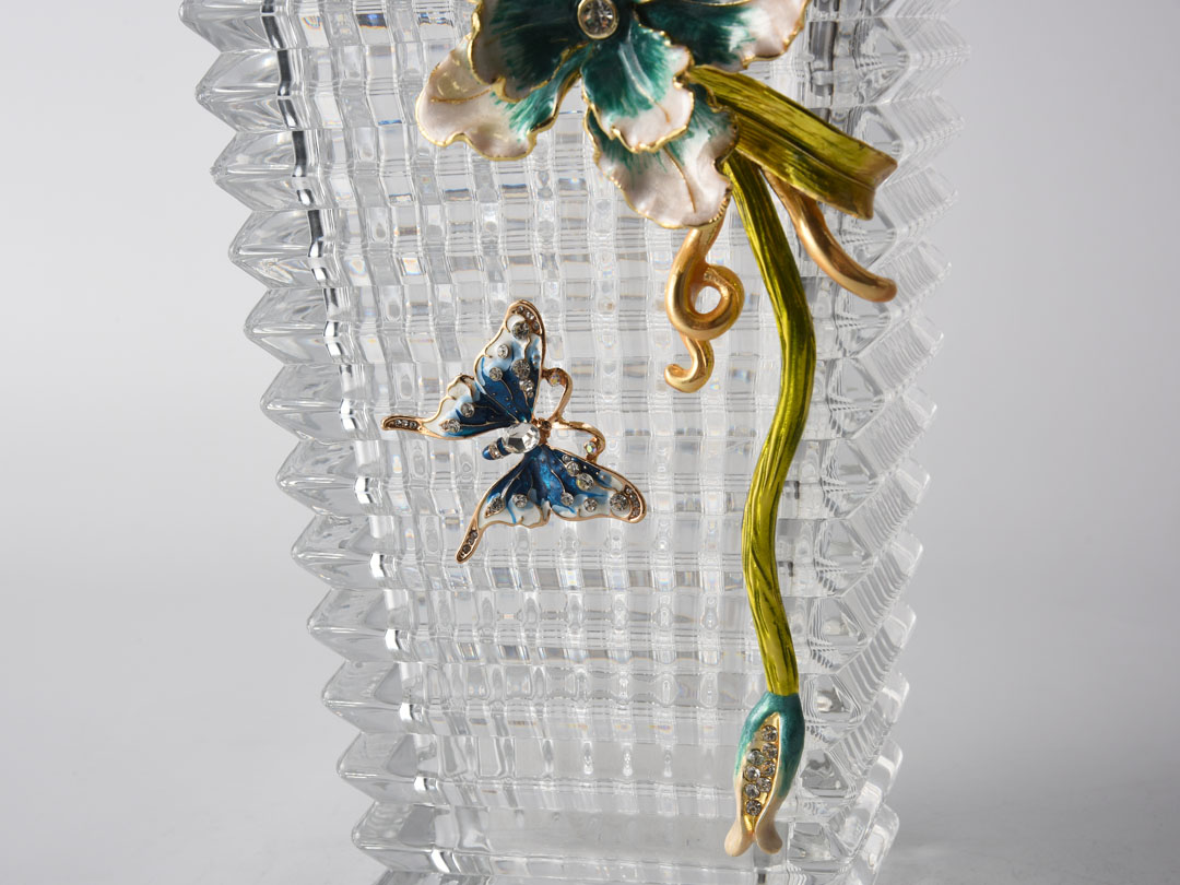 Süsenler ve Kelebekler ile Baccarat Cam Vazo Dekoru